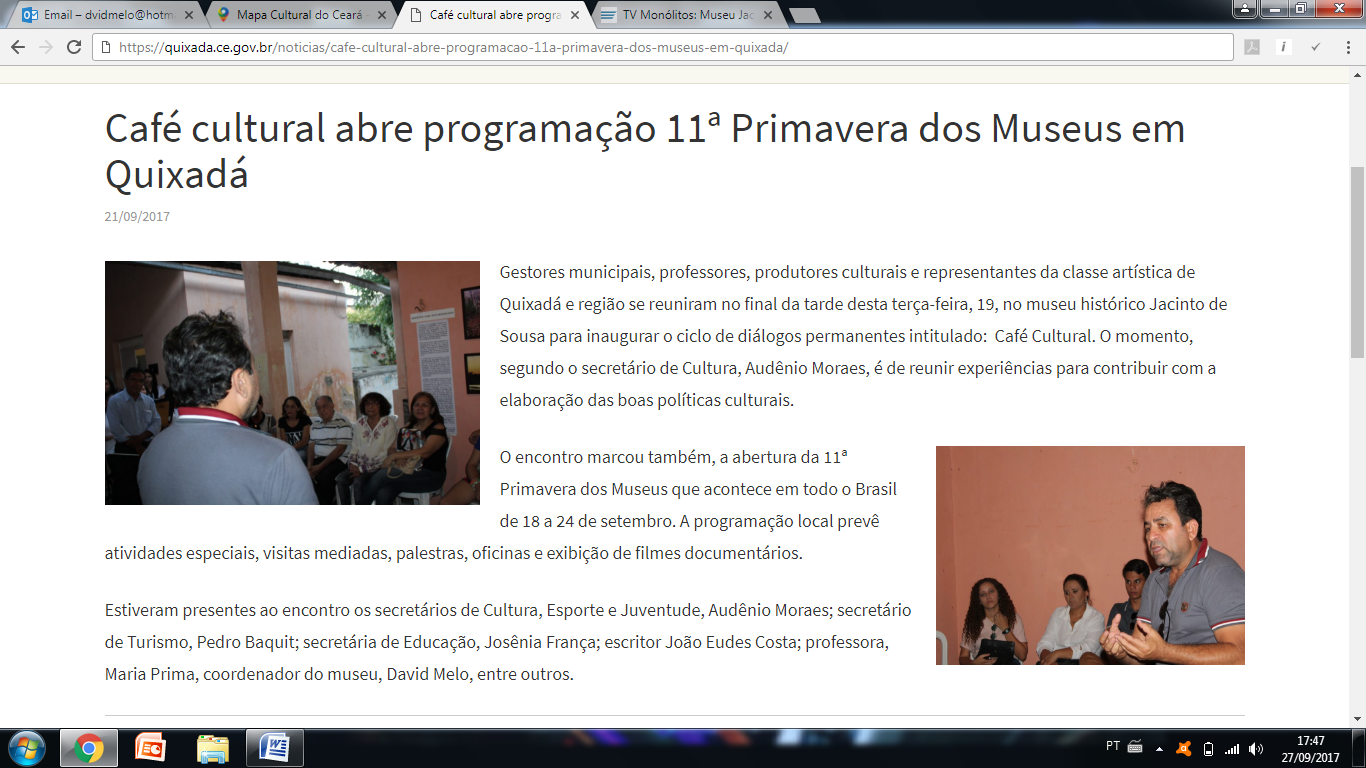 - Coordenador do Museu Histórico Jacinto de Sousa (2017/2019)