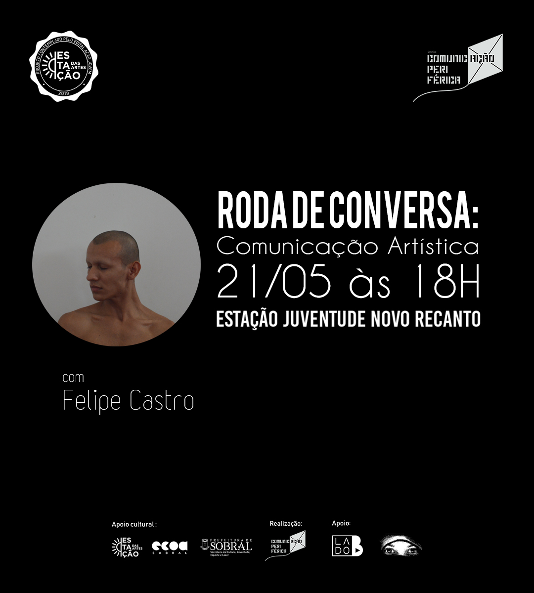 Coletivo Comunicação PeriféricaO Coletivo Comunicação Periférica é um movimento independente idealizado em 2018 por jovens do bairro Novo Recanto, em Sobral (CE), com o objetivo de dialogar com a comunidade e fomentar a formação artística e cultural através da comunicação livre e periférica. Reconhecendo o olhar pejorativo historicamente direcionado às periferias, trabalhamos para ressignificar a imagem do território, ocupando espaços públicos e promovendo a reorganização social por meio de relações de afeto, arte e comunicação humanizada.