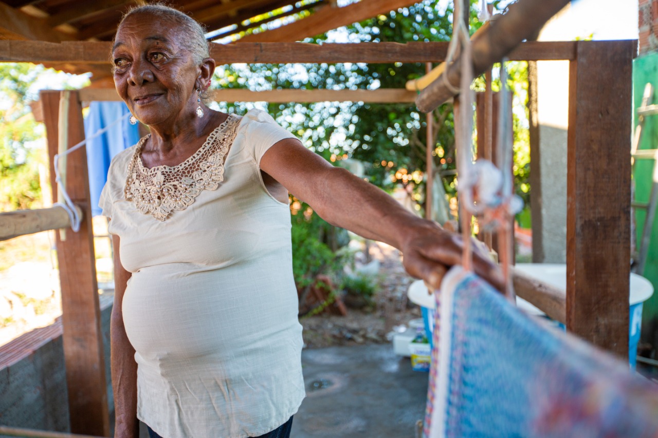 Em seu quarto, transformado em um acolhedor ateliê, Dinha exibe com orgulho suas obra. Para ela, que domina a arte da tecelagem com maestria, nenhum processo é complicado: o tempo desvendou todos os segredos e aperfeiçoou suas técnicas.