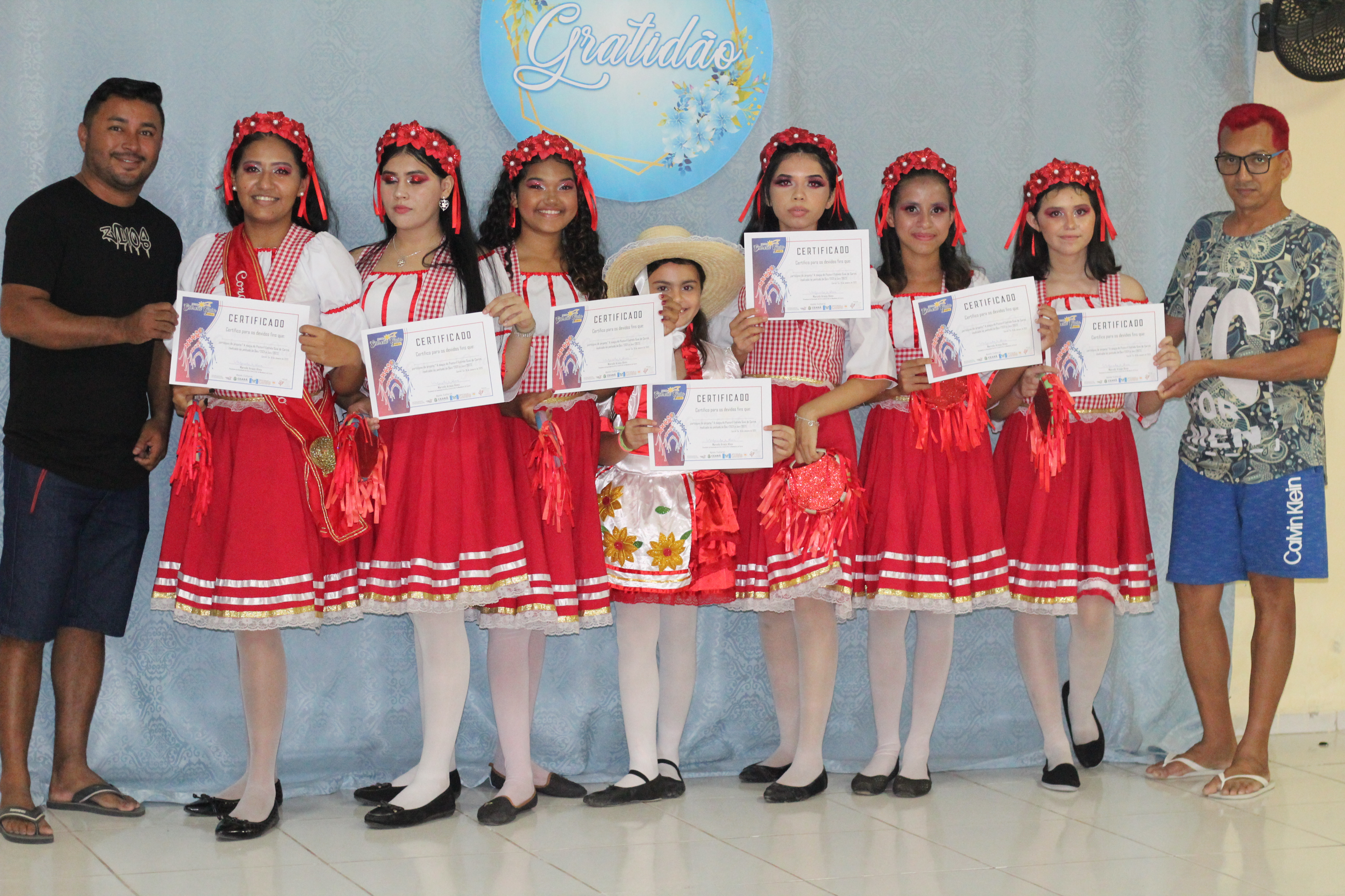 Aproximadamente 25 pessoas formam o nosso pastoril, entre dançarinas, atores e produção.