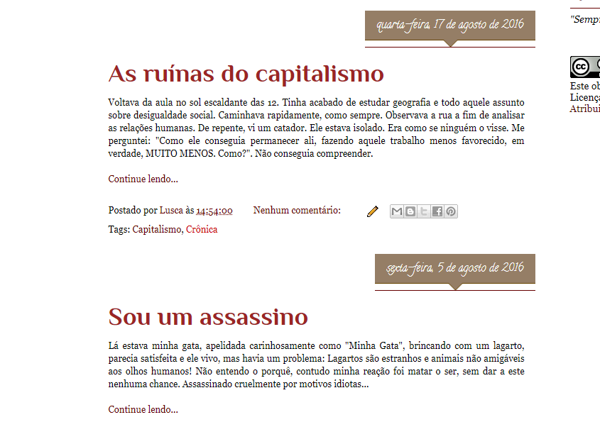 Lusca escreve crônicas, contos, resenhas, críticas e também sobre experiências desde de meados de 2016 para o blog O Universo de Lusca. Atualmente também trabalha no podcast homônimo.Vídeos