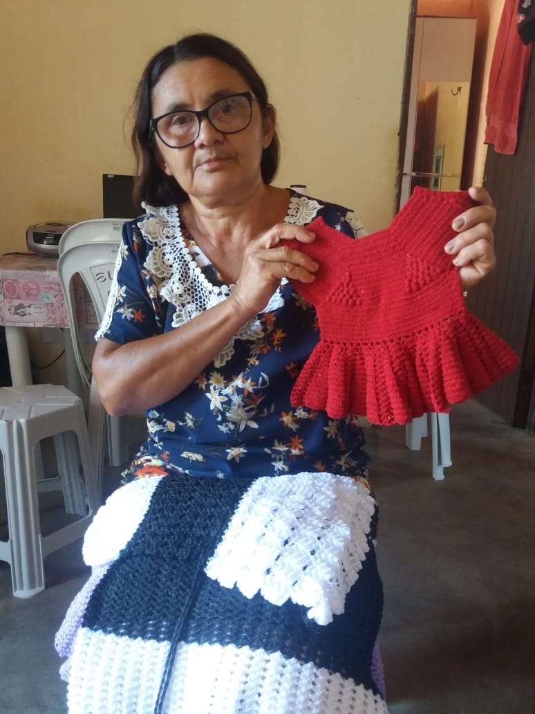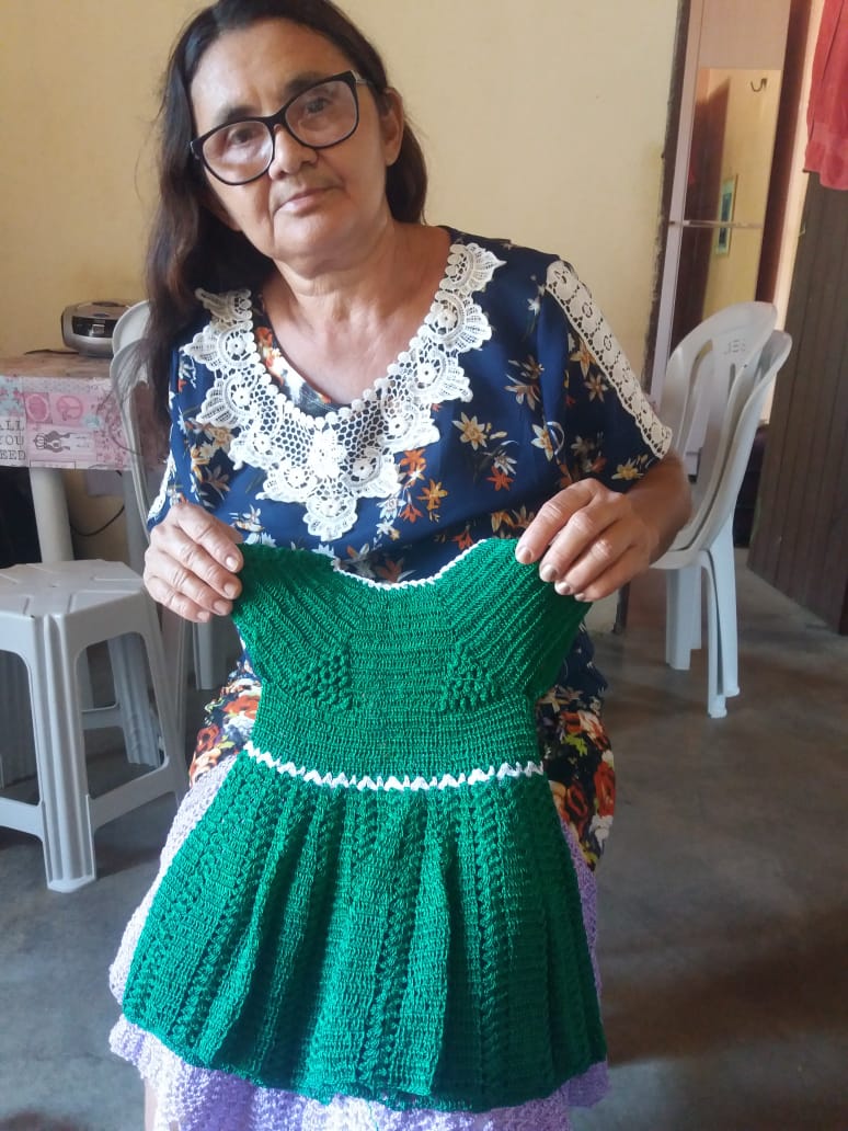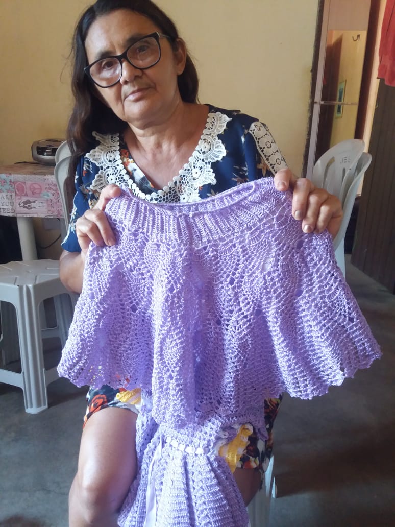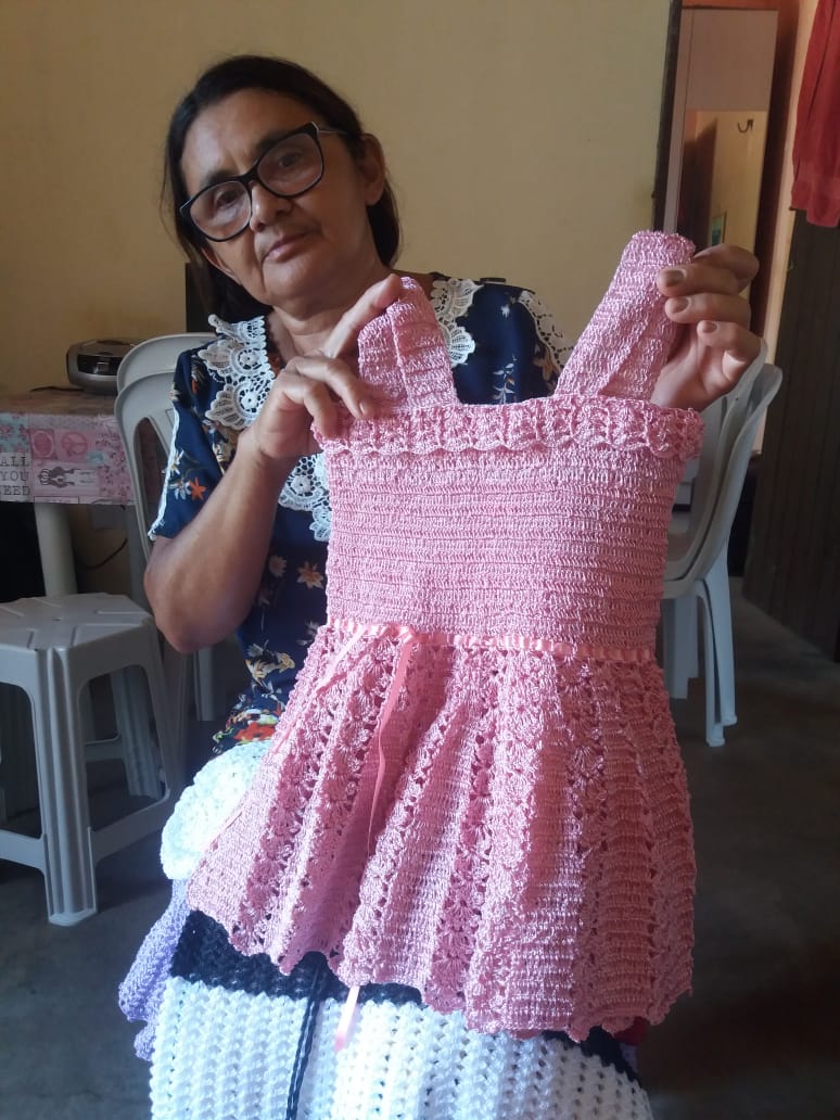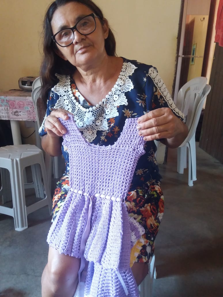 Criei 5 filhos com o sustento de crochê e agricultura familiar, e até hoje uso essa renda para me manter e pagar as minhas contas, além do crochê minha oura renda é o Bolsa Família. Confecciono Vestidos, laços, biquínis, calcinhas, blusas e etc de crochê, por encomenda e faço acervo para tentar comercializar em feiras, bazares e eventos municipais.Vídeos