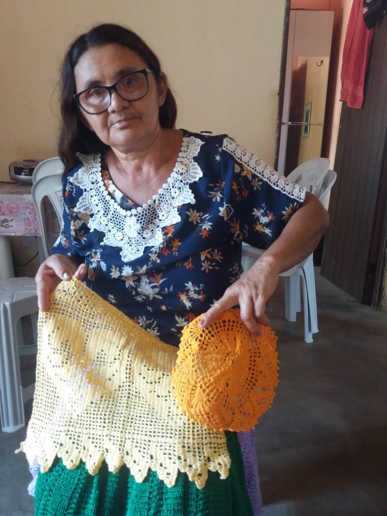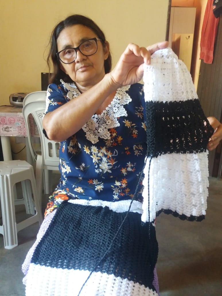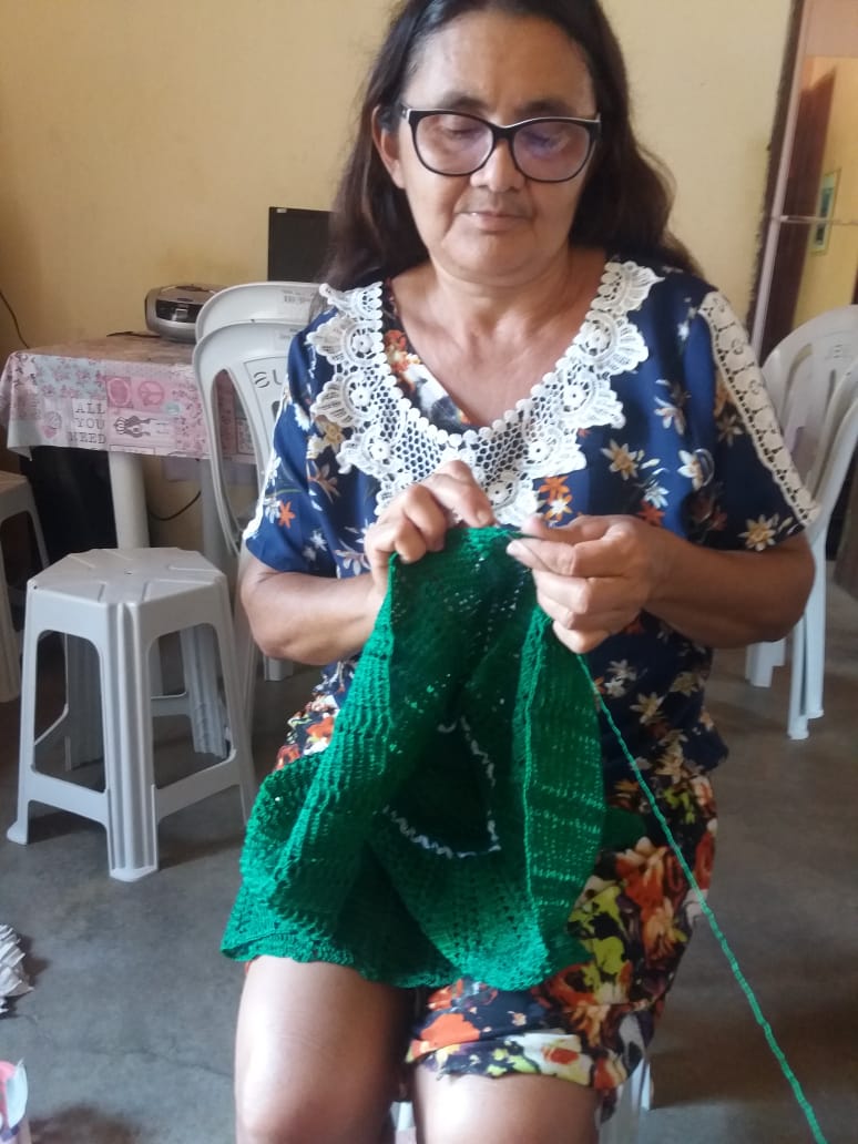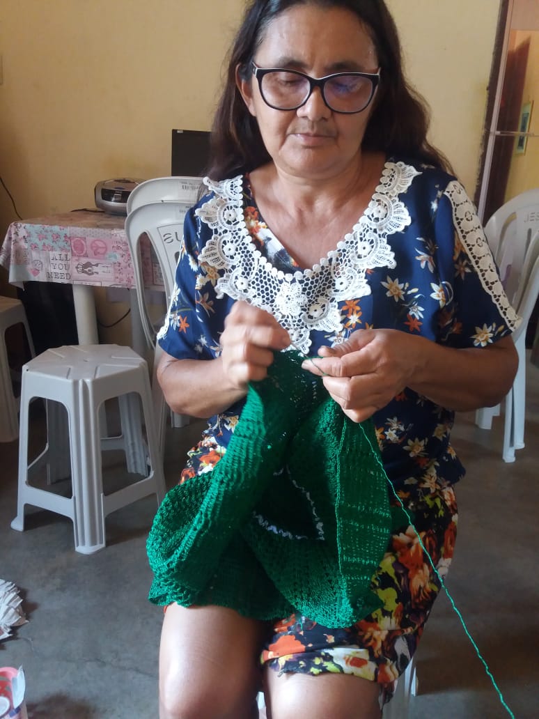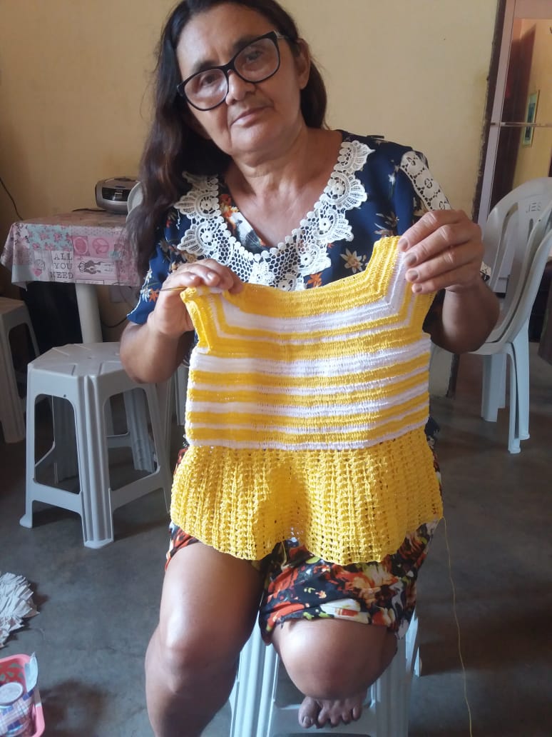 Criei 5 filhos com o sustento de crochê e agricultura familiar, e até hoje uso essa renda para me manter e pagar as minhas contas, além do crochê minha oura renda é o Bolsa Família. Confecciono Vestidos, laços, biquínis, calcinhas, blusas e etc de crochê, por encomenda e faço acervo para tentar comercializar em feiras, bazares e eventos municipais.Vídeos