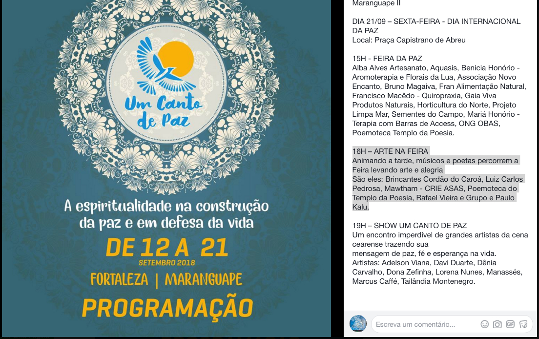 - Festival Maracanaú Live I e II 2020 - 19º Feirão de Economia Solidária Online IFCE 2020 - Templo da Poesia