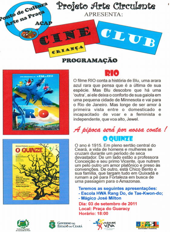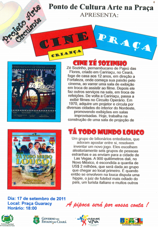 Para realização das nossas atividades e ações, contamos com os seguintes parceiros: Comerciantes Locais; Instituto Nordeste Cidadania - INEC/BNB; Prefeitura Municipal de Guaraciaba do Norte-CE; Secretaria de Cultura do Estado do Ceará; GESAC; Ministério da Cultura, através do Programa Cultura Viva.