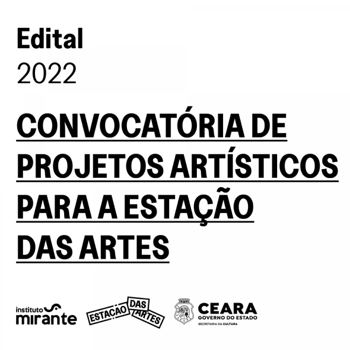 A Estação das Artes, integrante da Rede Pública de Equipamentos Culturais da Secretaria da Cultura do Estado do Ceará (Secult - Ceará), com gestão em parceria com o Instituto Mirante, convida você a participar da Convocatória de Projetos Artísticos que selecionará ações a serem apresentadas no Complexo, de novembro/22 a fevereiro/23, conforme quantidade de vagas descritas neste edital.
