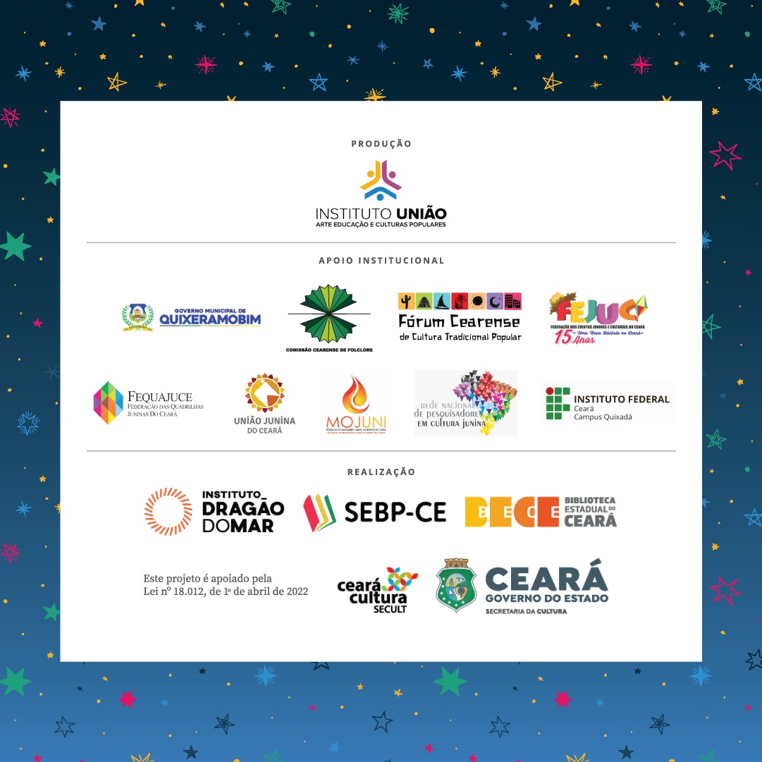 14h20 – Apresentação do XXII Edital Ceará Junino – Quadro Sintético das Categorias (Quadrilhas Adultas, Infantis, Diversidade, do Campo e Festivais Regionais): Equipe Secult/CE