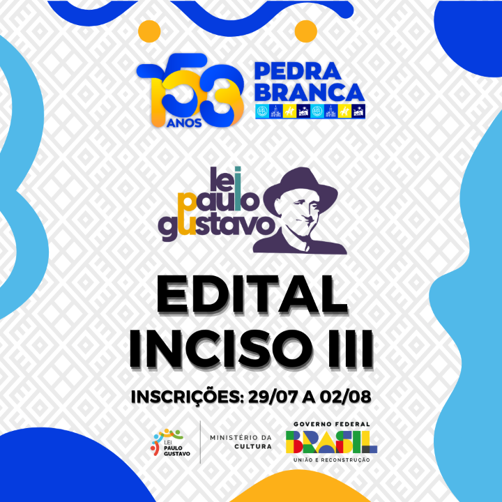 O objeto deste Edital é selecionar 01 projeto cultural de formação em audiovisual para receber apoio financeiro, por meio da celebração de Termo de Execução Cultural, com recurso financeiro proveniente da Lei Complementar 195/2022, decreto nº 11.525, de 11 de maio de 2023 (Lei Paulo Gustavo) que tem o objetivo de incentivar e difundir as diversas formas de manifestações culturais do Município de Pedra Branca – Ceará.