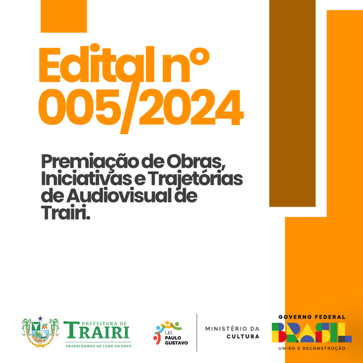 EDITAL DE CHAMAMENTO PÚBLICO Nº 005/2024 – PREMIAÇÃO DE OBRAS, INICIATIVAS E TRAJETÓRIAS DE AUDIOVISUAL DE TRAIRI. EDITAL DE PREMIAÇÃO PARA AGENTES CULTURAIS COM RECURSOS DA LEI COMPLEMENTAR Nº 195/2022 (LEI PAULO GUSTAVO)