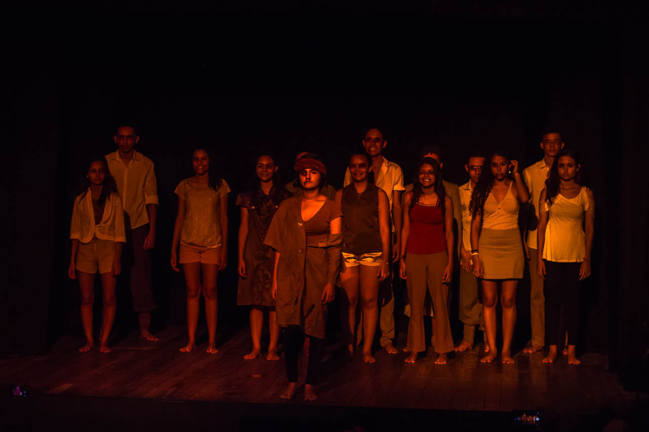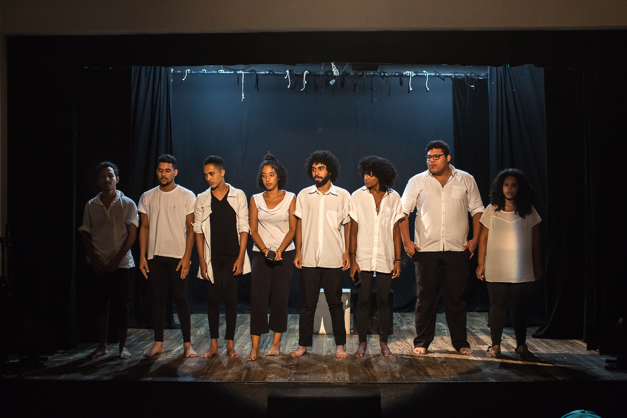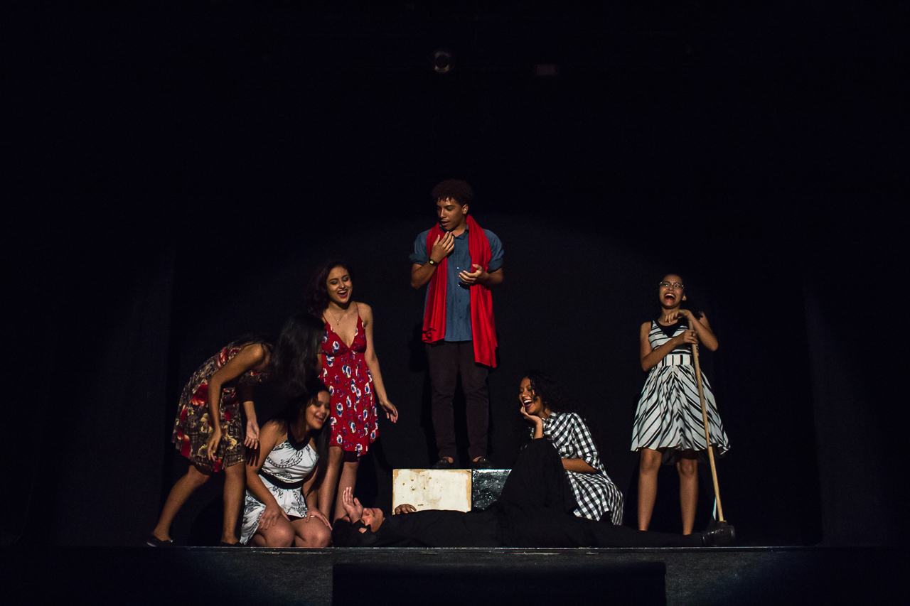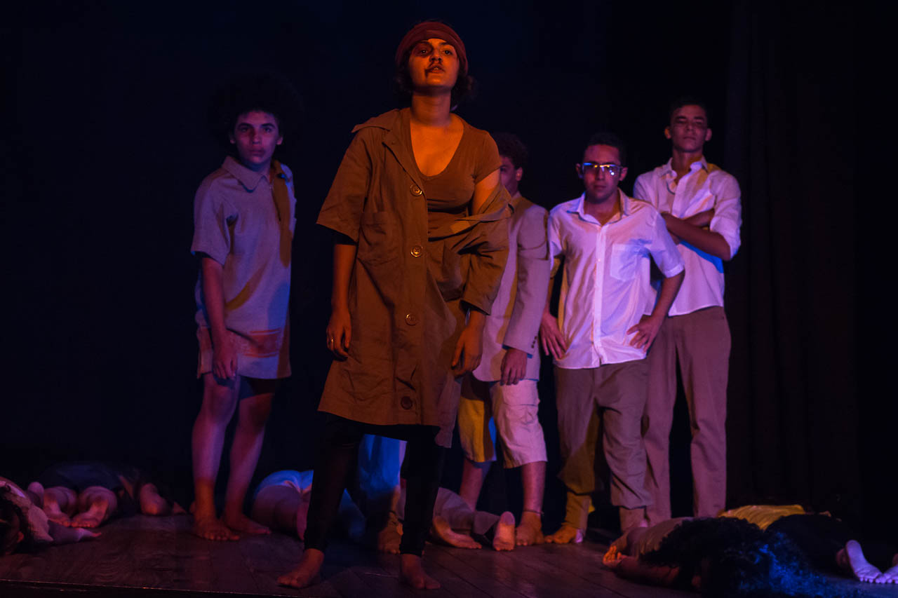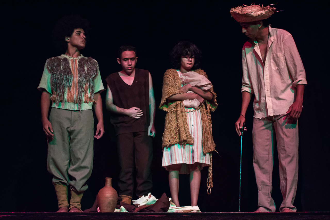 Segmento V- Montagem: é um processo de ampla pesquisa e descobertas para os alunos no qual cada um recebe uma dramaturgia de autores cearenses para ler e a analisar, desses autores é escolhido um, ou se na turma tiver alguém que queira e goste de escrever, acompanhamos esse aluno orientando-o na construção da Dramaturgia. Nessa fase se trabalha a análise de texto, análise e construção de personagem, também pesquisamos autores para ampliar o conceito da estética em que o espetáculo pode ter como referências.
