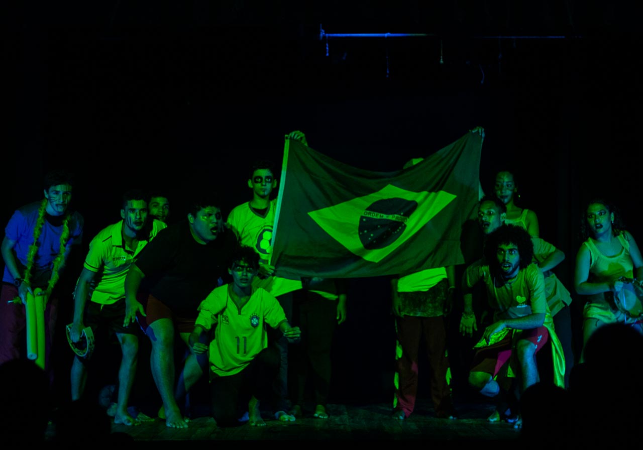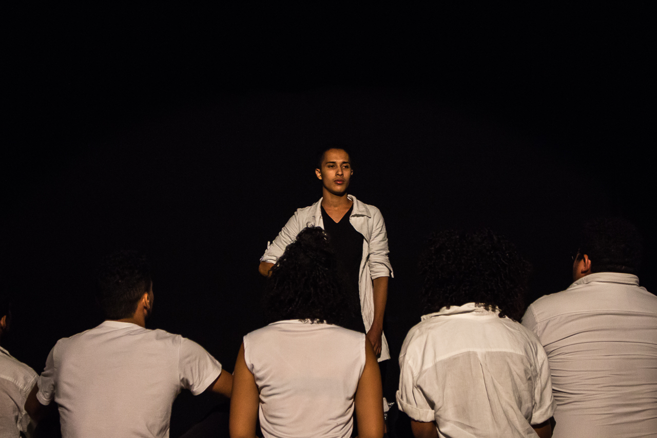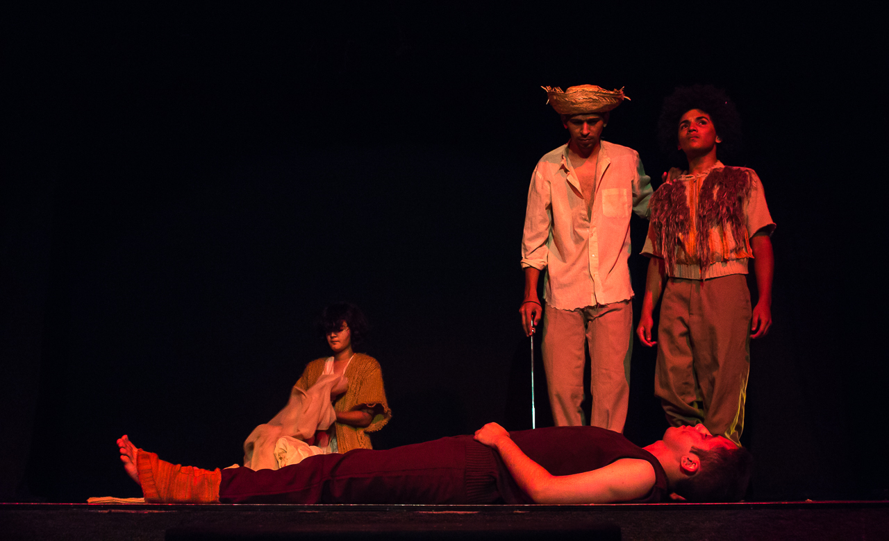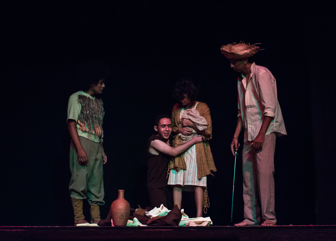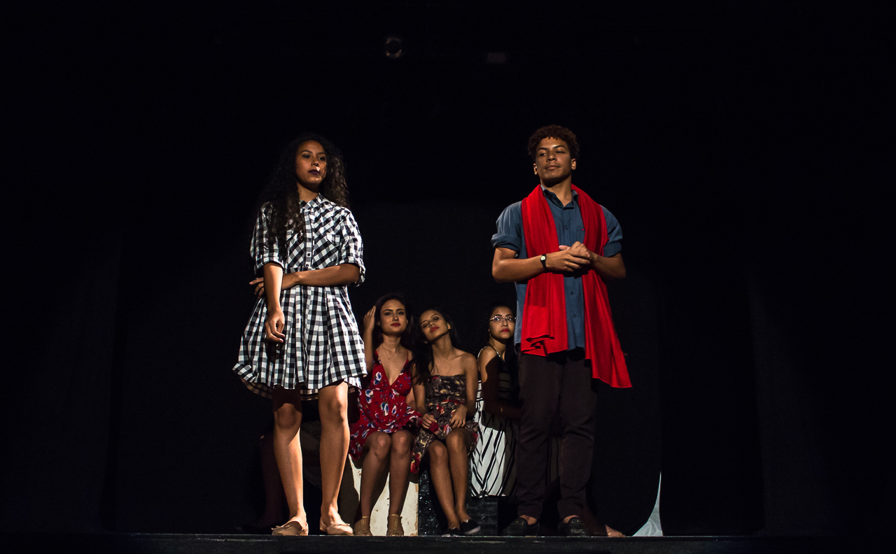 Segmento V- Montagem: é um processo de ampla pesquisa e descobertas para os alunos no qual cada um recebe uma dramaturgia de autores cearenses para ler e a analisar, desses autores é escolhido um, ou se na turma tiver alguém que queira e goste de escrever, acompanhamos esse aluno orientando-o na construção da Dramaturgia. Nessa fase se trabalha a análise de texto, análise e construção de personagem, também pesquisamos autores para ampliar o conceito da estética em que o espetáculo pode ter como referências.