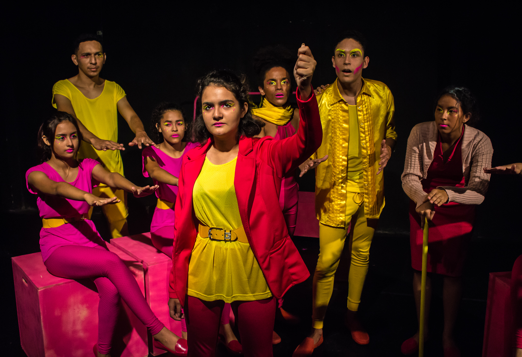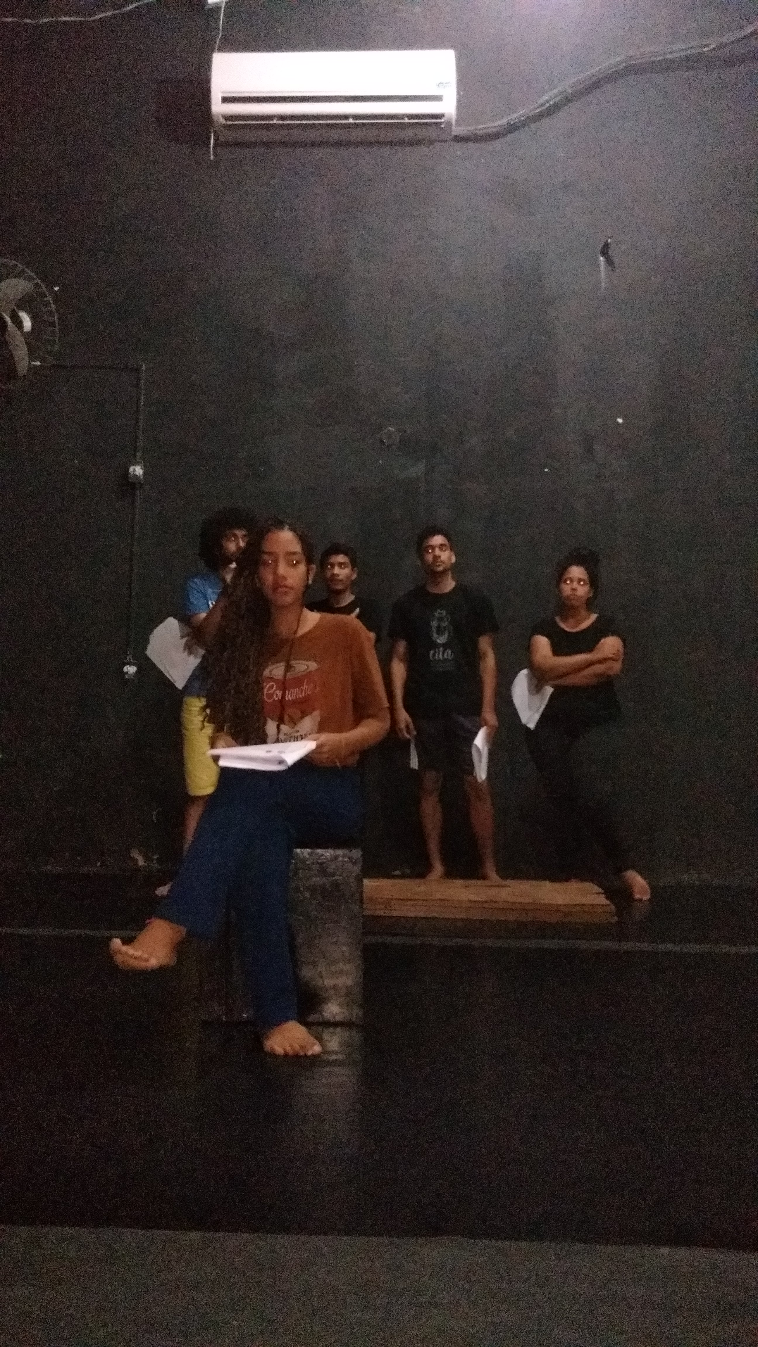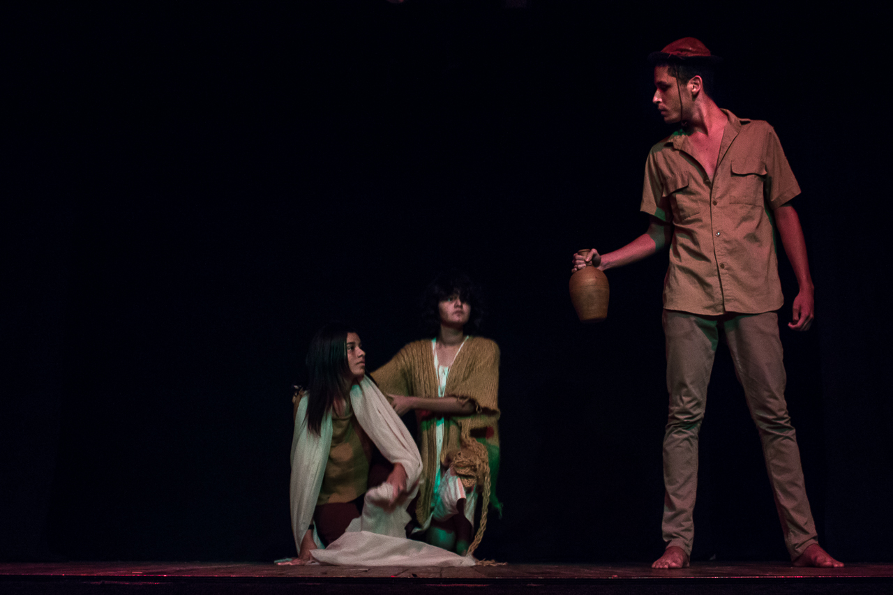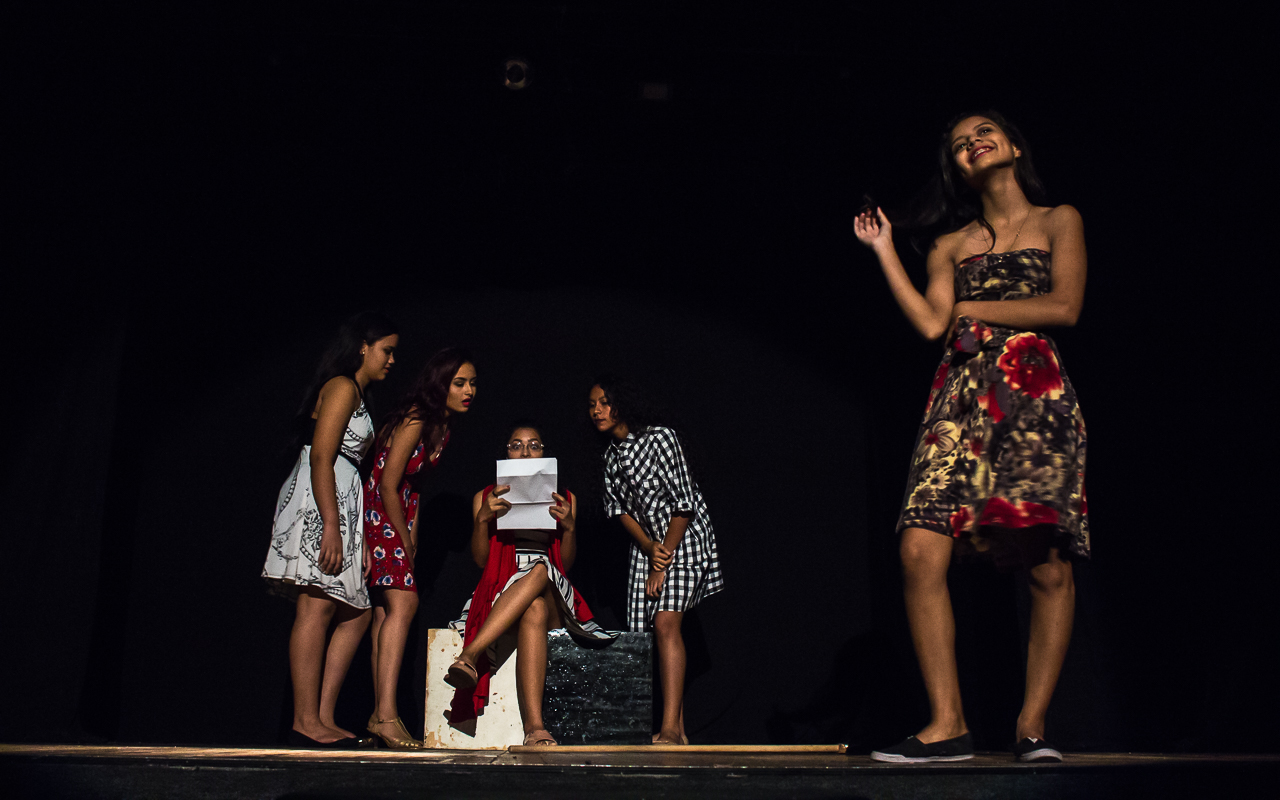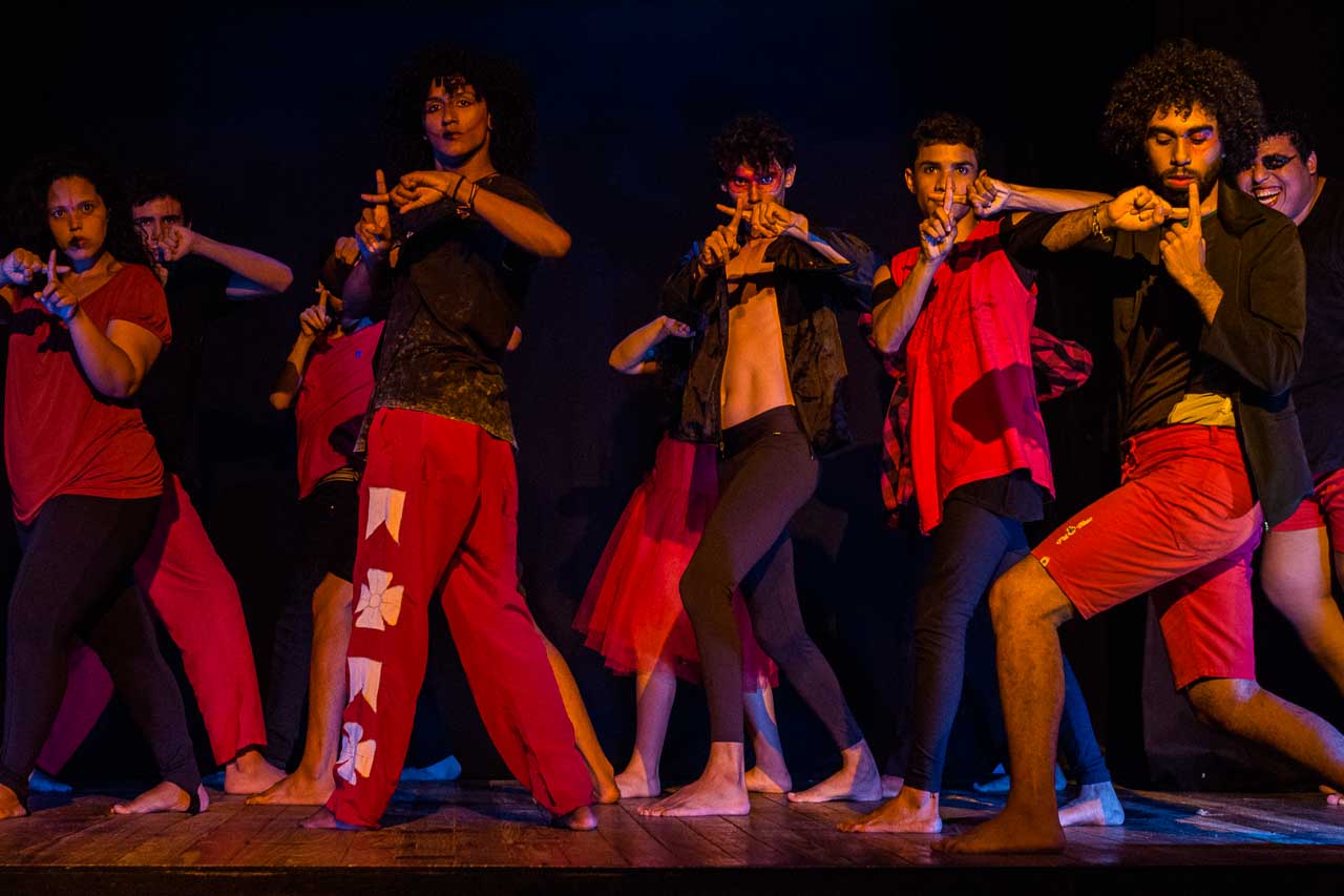 Segmento V- Montagem: é um processo de ampla pesquisa e descobertas para os alunos no qual cada um recebe uma dramaturgia de autores cearenses para ler e a analisar, desses autores é escolhido um, ou se na turma tiver alguém que queira e goste de escrever, acompanhamos esse aluno orientando-o na construção da Dramaturgia. Nessa fase se trabalha a análise de texto, análise e construção de personagem, também pesquisamos autores para ampliar o conceito da estética em que o espetáculo pode ter como referências.