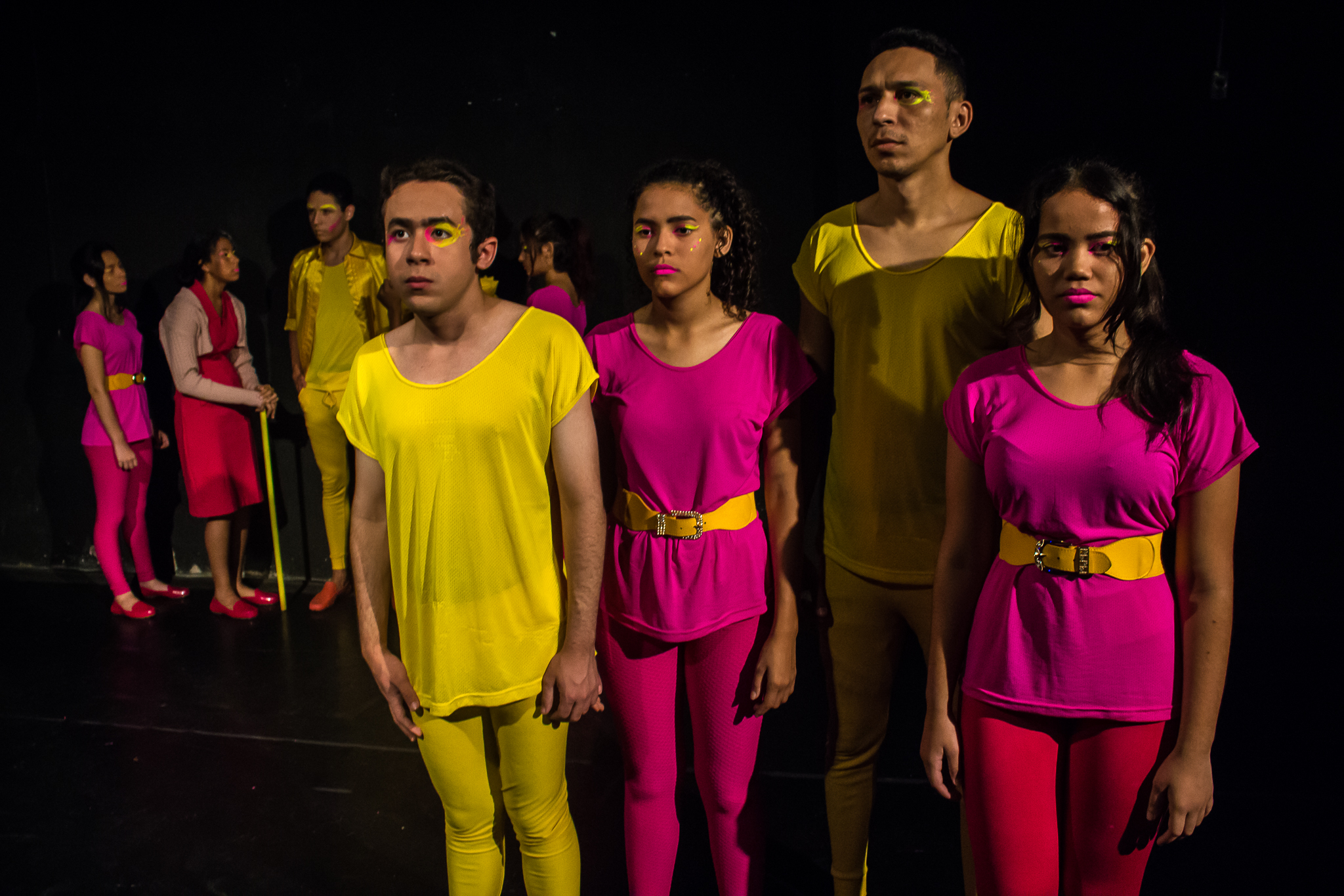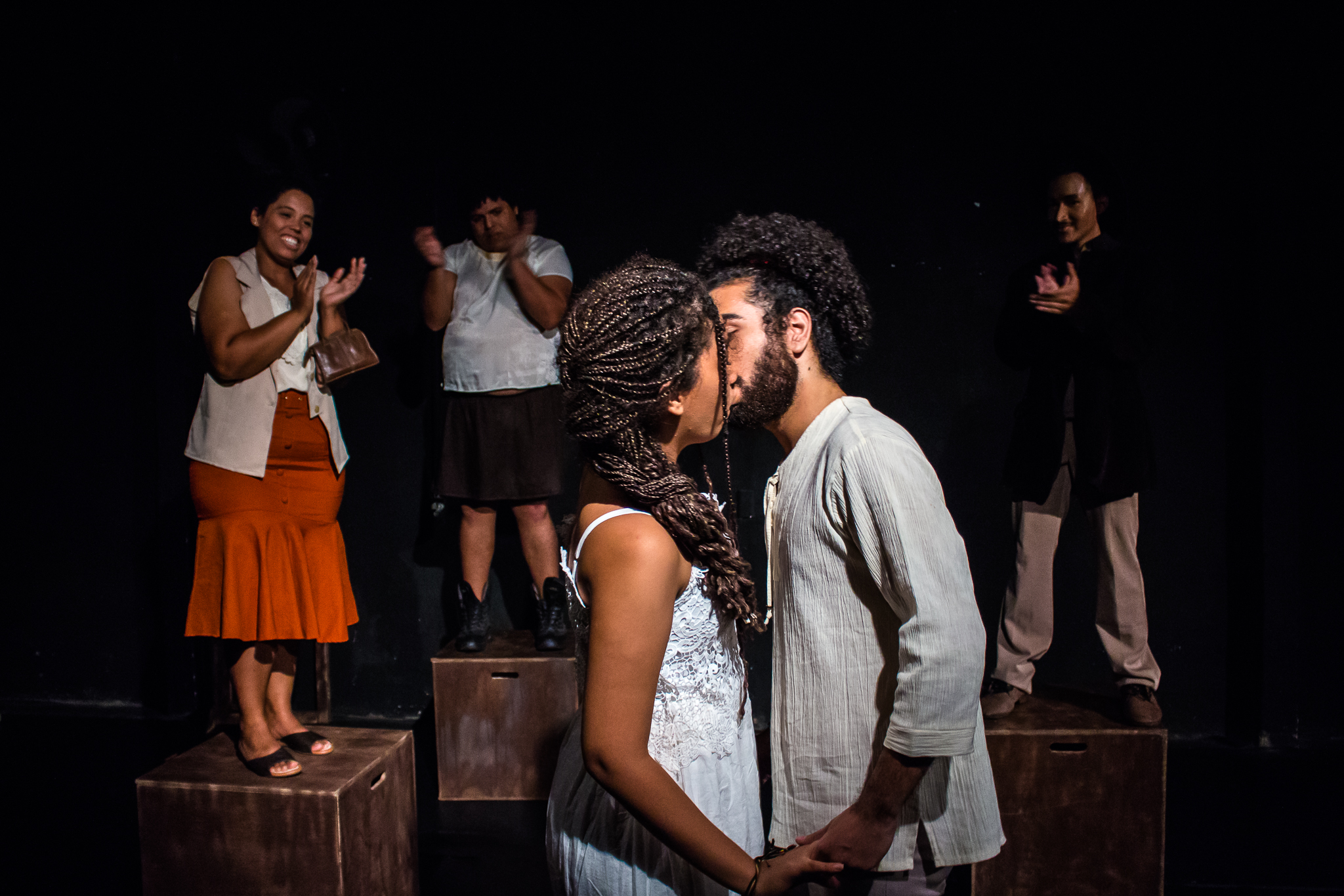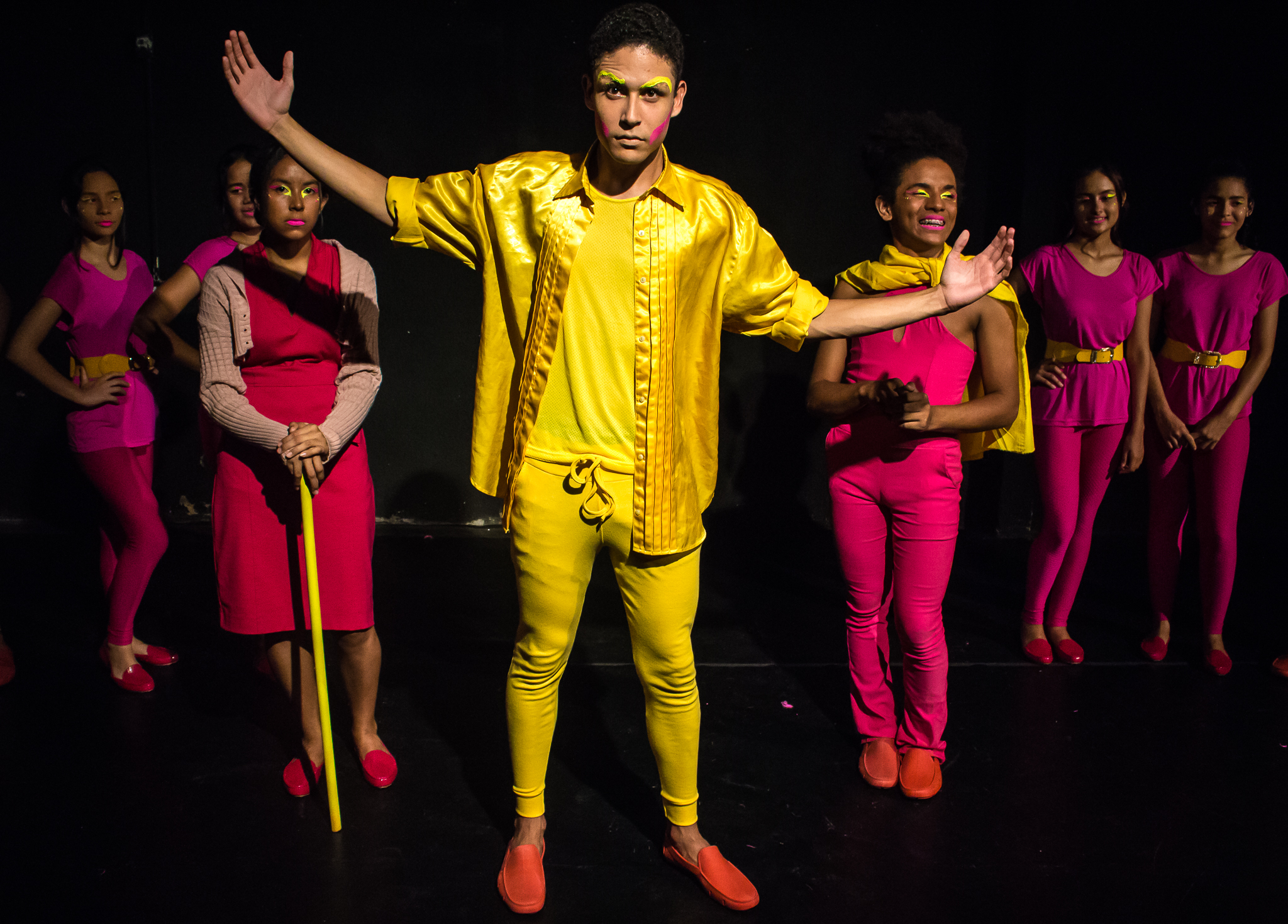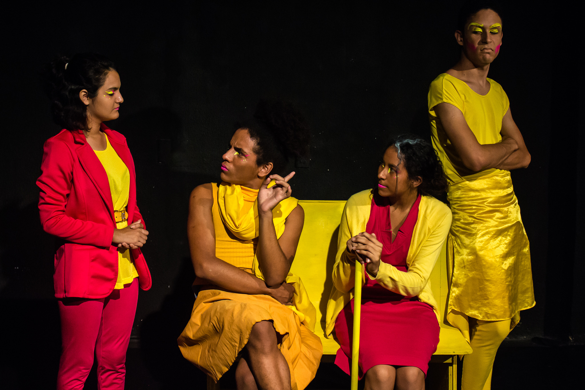 Segmento V- Montagem: é um processo de ampla pesquisa e descobertas para os alunos no qual cada um recebe uma dramaturgia de autores cearenses para ler e a analisar, desses autores é escolhido um, ou se na turma tiver alguém que queira e goste de escrever, acompanhamos esse aluno orientando-o na construção da Dramaturgia. Nessa fase se trabalha a análise de texto, análise e construção de personagem, também pesquisamos autores para ampliar o conceito da estética em que o espetáculo pode ter como referências.